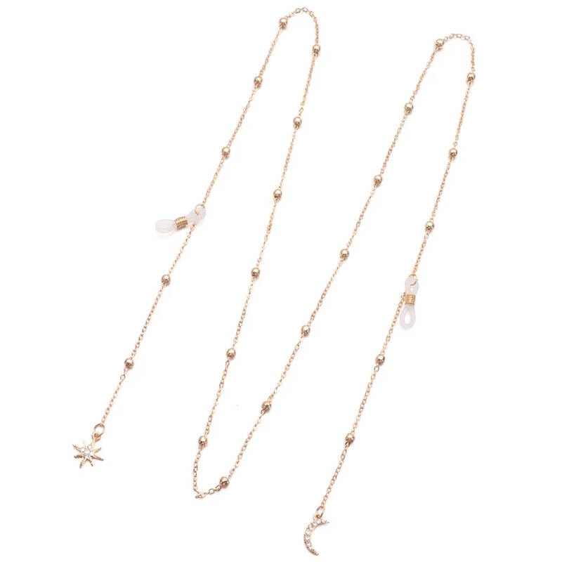 Αλυσίδα Γυαλιών Χρυσή Τύπου Σκουλαρίκι (Αστέρι & Φεγγάρι Διακοσμητικούς Λίθους Και Χρυσή Πέρλα)