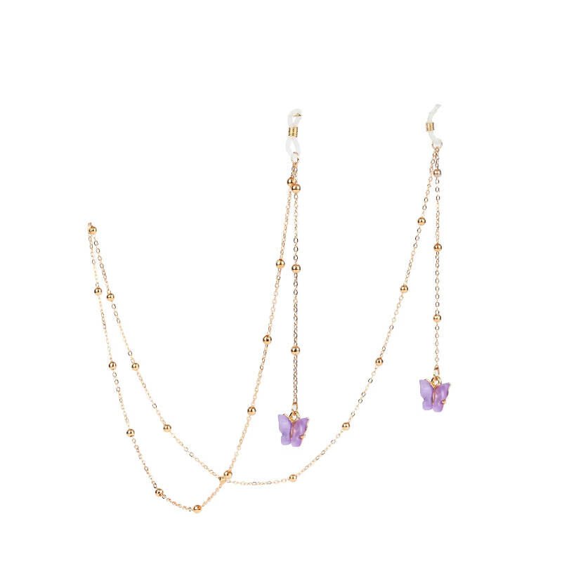 Αλυσίδα Γυαλιών Χρυσή τύπου Σκουλαρίκι (Πεταλούδα Μωβ με Χρυσή Πέρλα)