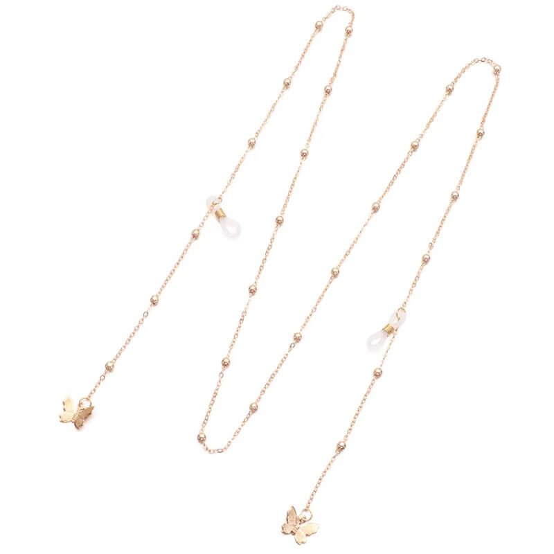 Αλυσίδα Γυαλιών Χρυσή τύπου Σκουλαρίκι (Πεταλούδα Μεταλλική Χρυσή με Χρυσή Πέρλα)