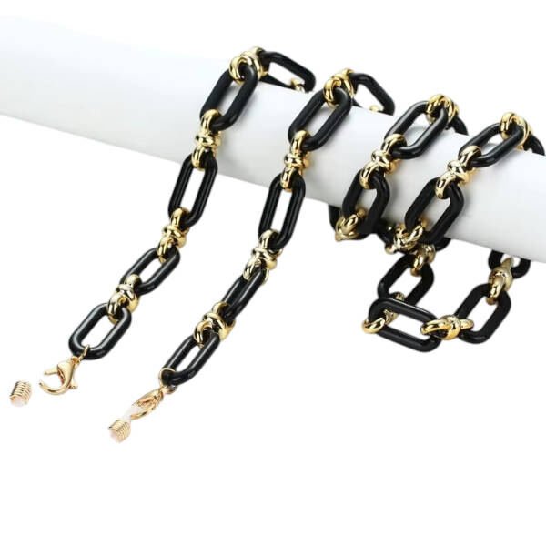 Κοκκάλινη αλυσίδα με χρυσή ένωση (Μαύρη)