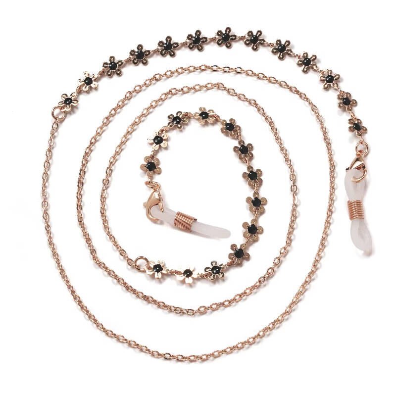 Μεταλλική Αλυσίδα Χρυσή-Ροζ με Μαργαρίτες Μαύρες