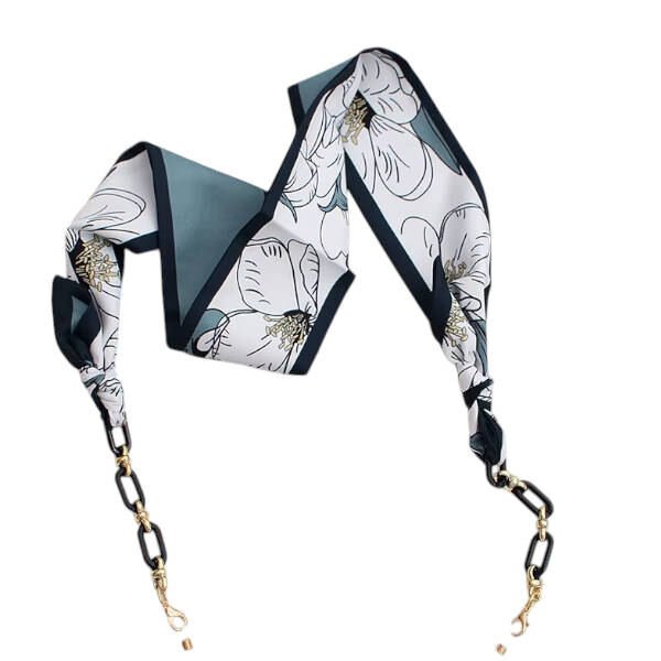 Φουλάρι Γυαλιών με αλυσίδα (Άσπρο-μπλε με λουλούδια)